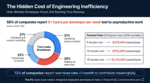 The hard truth is that a high burn rate does not guarantee proportional output. A 2024 analysis highlighted a growing concern among venture capitalists about “billions in inefficient engineering teams,” where bloated departments were failing to deliver on their promise. [1] This inefficiency stems from several factors, including communication overhead in large teams, lack of clear goals, and time wasted on non-productive tasks.