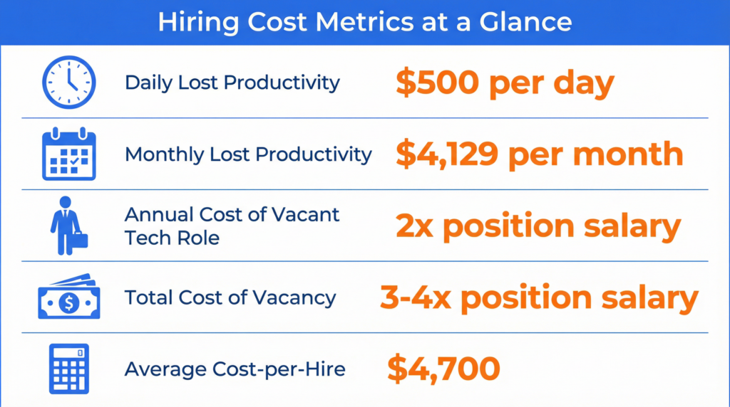 The most immediate and tangible impact of a slow hiring process is the direct financial cost. While many organizations focus on the cost-per-hire, the real financial drain comes from the lost productivity and revenue associated with an empty seat. The numbers are staggering and paint a clear picture of the urgency required in today’s talent market.